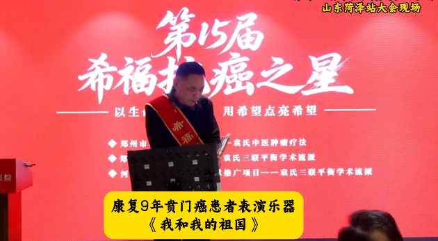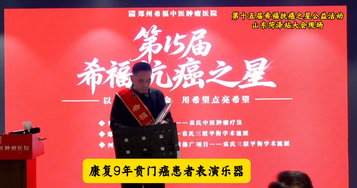 康复9年贲门癌患者表演乐器-第15届希福抗癌之星山东菏泽站现场!
