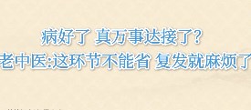 病好了 真万事达接了?老中医:这环节不能省 复发就麻烦了