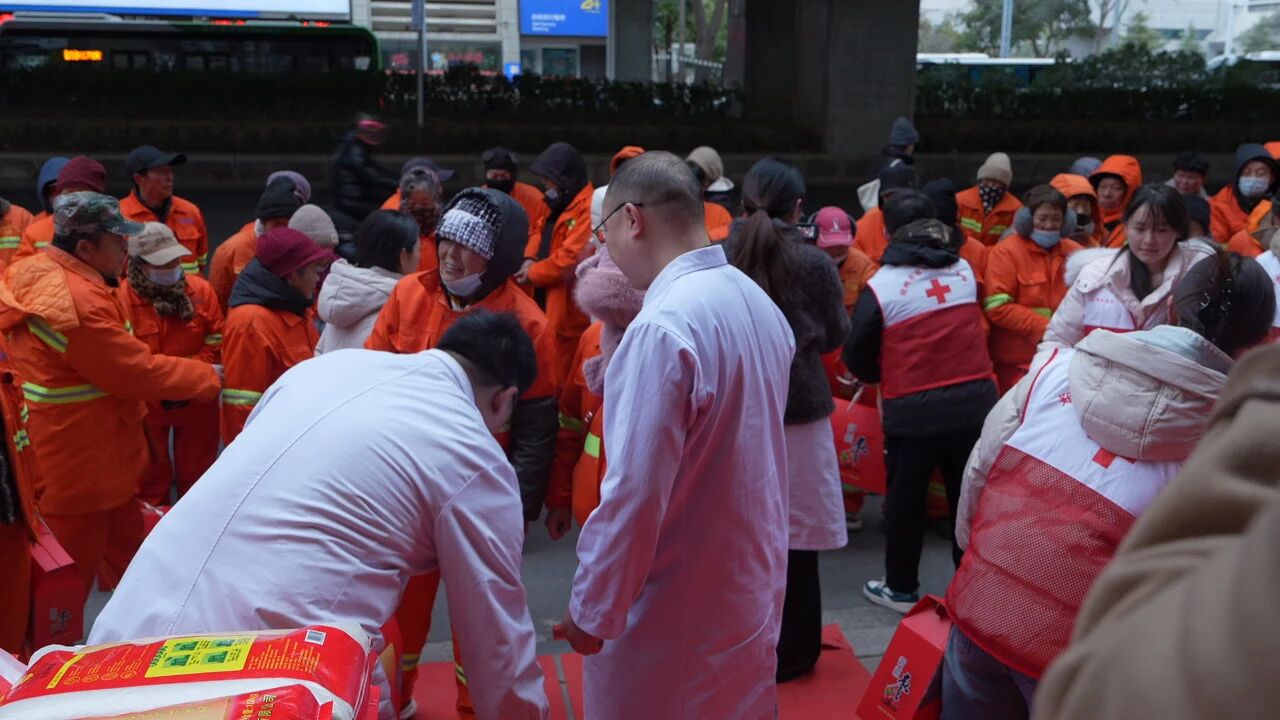 中医大爱无疆界,寒冬送暖有希福。2026年2月6日,由郑州市金水区红十字会主办,郑州希福中医肿瘤医院作为捐赠单位,共同举办“党建引领践初心 希福博爱暖人心”公益活动,向一线环卫工作者送上暖冬年货,致敬“城市劳动者”。