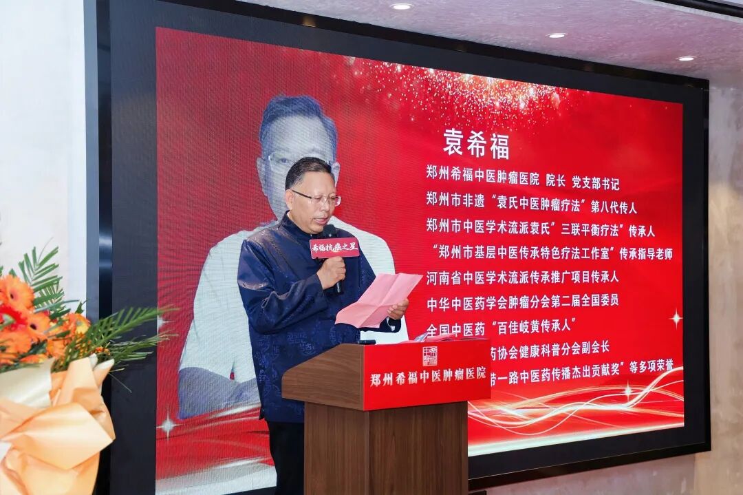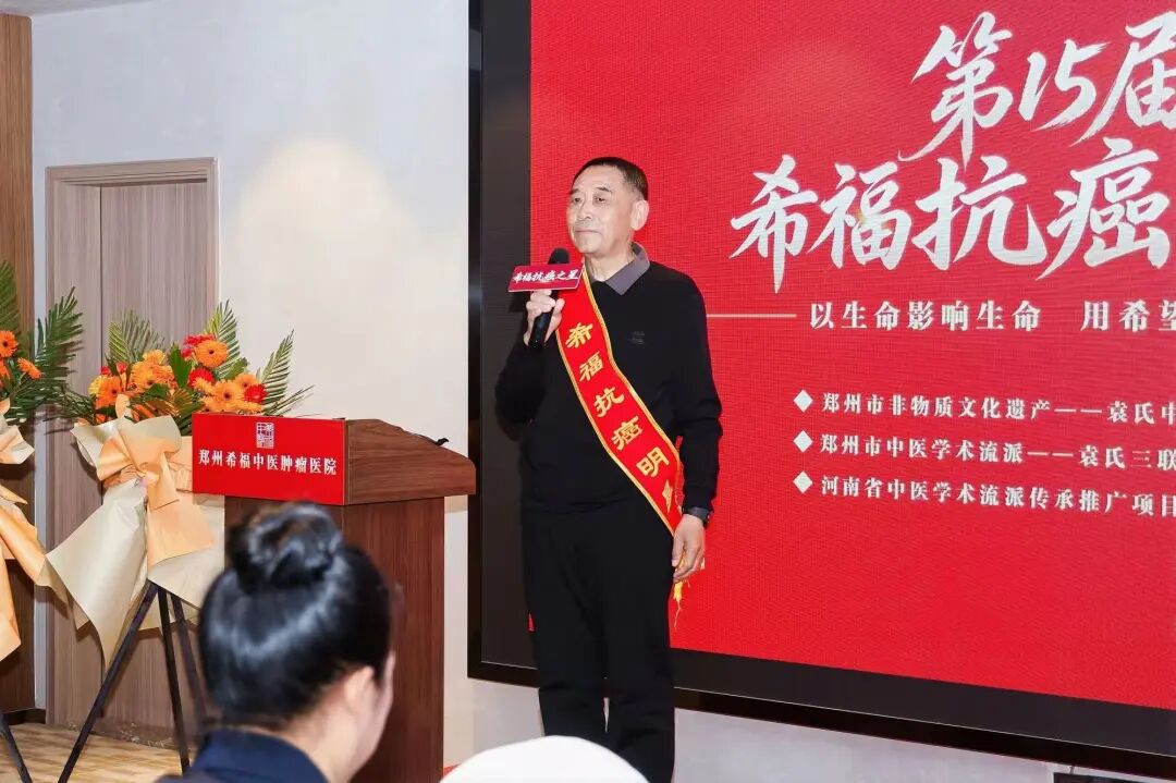 “郑州市非物质文化遗产-袁氏中医肿瘤疗法”传承人-袁希福院长先开了口。像拉家常一样,先是谢过了大家的信任,接着聊起了办这个会的初衷——“以生命影响生命,用希望点亮希望”。新老患者在交流中形成强大的“正向能量场”,推动彼此实现从“惧癌”到“抗癌”的心理蜕变,进而带动身心全面康复。这种转变的力量,正是:“您的故事,是别人坚持下去的理由;而别人的故事,或许就是您重生的开始。”