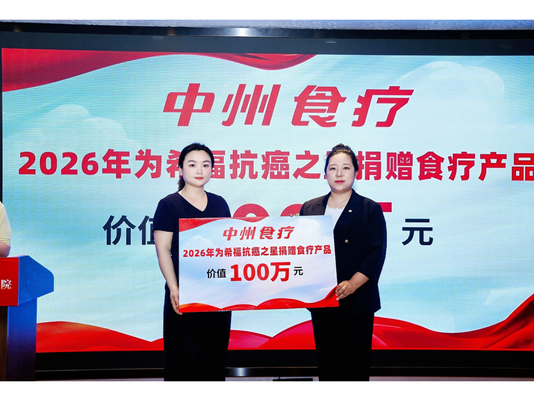 这话虽然朴实,却字字砸在心坎上,台下的掌声也就自然而然地热了起来。这正是“治病先疗心”理念最直接的体现。在袁希福院长的公益号召下,大会也迎来了一份沉甸甸的厚礼。本次会议特别感谢郑州中州食疗科技有限公司的鼎力支持,现场,中州食疗总经理袁方女士向郑州希福中医肿瘤医院副院长孙晓霞女士,为本届活动捐赠了价值一百万元的食疗产品,为健康助力,为公益添砖加瓦!