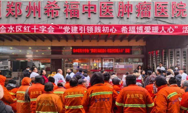 新闻来源:“党建引领践初心 希福博爱暖人心”郑州希福中医肿瘤医院向百名环卫工人捐赠数万元物资