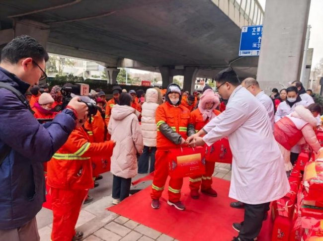 党建红引领博爱暖,袁希福院长为环卫工人爱心捐赠暖冬物资!